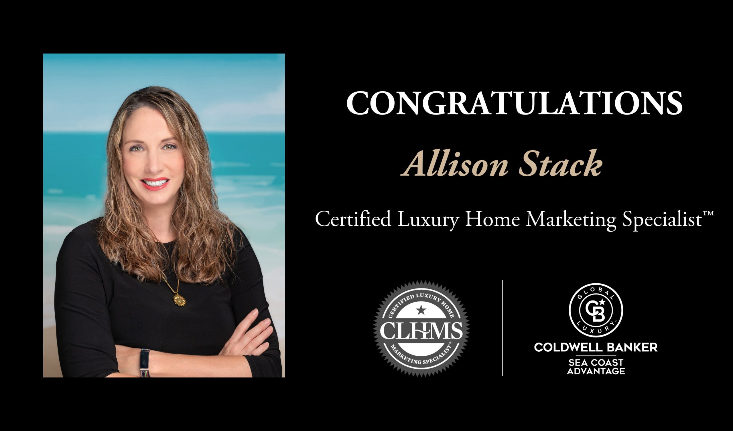 “Attaining the CLHMS designation is a significant accomplishment and testament to Allison’s dedication to providing the best service possible to clients in the luxury residential sector,” commented Kathleen Bibbins, Director of The Institute for Luxury Home Marketing. “The CLHMS “seal” is a symbol of distinction. Affluent buyers and sellers from around the world look for this symbol of knowledge, expertise and performance when putting their trust in a real estate professional.”