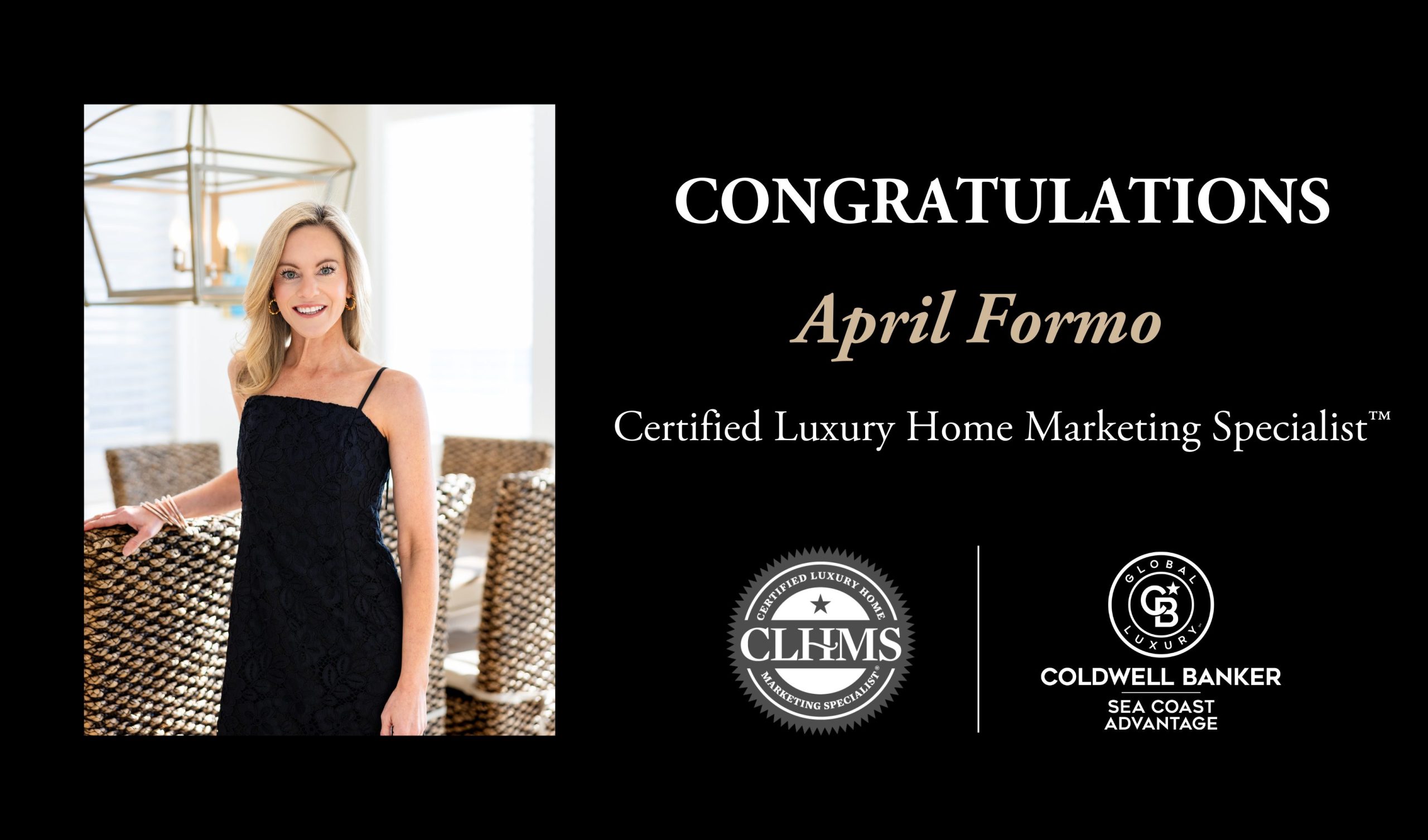 April Formo with Coldwell Banker Sea Coast Advantage in Murrells Inlet, SC has recently earned the coveted Certified Luxury Home Marketing Specialist™ (CLHMS™) designation from The Institute for Luxury Home Marketing. This accolade underscores April’s expertise and proficiency in the upper-tier market and proven performance in this niche sector.