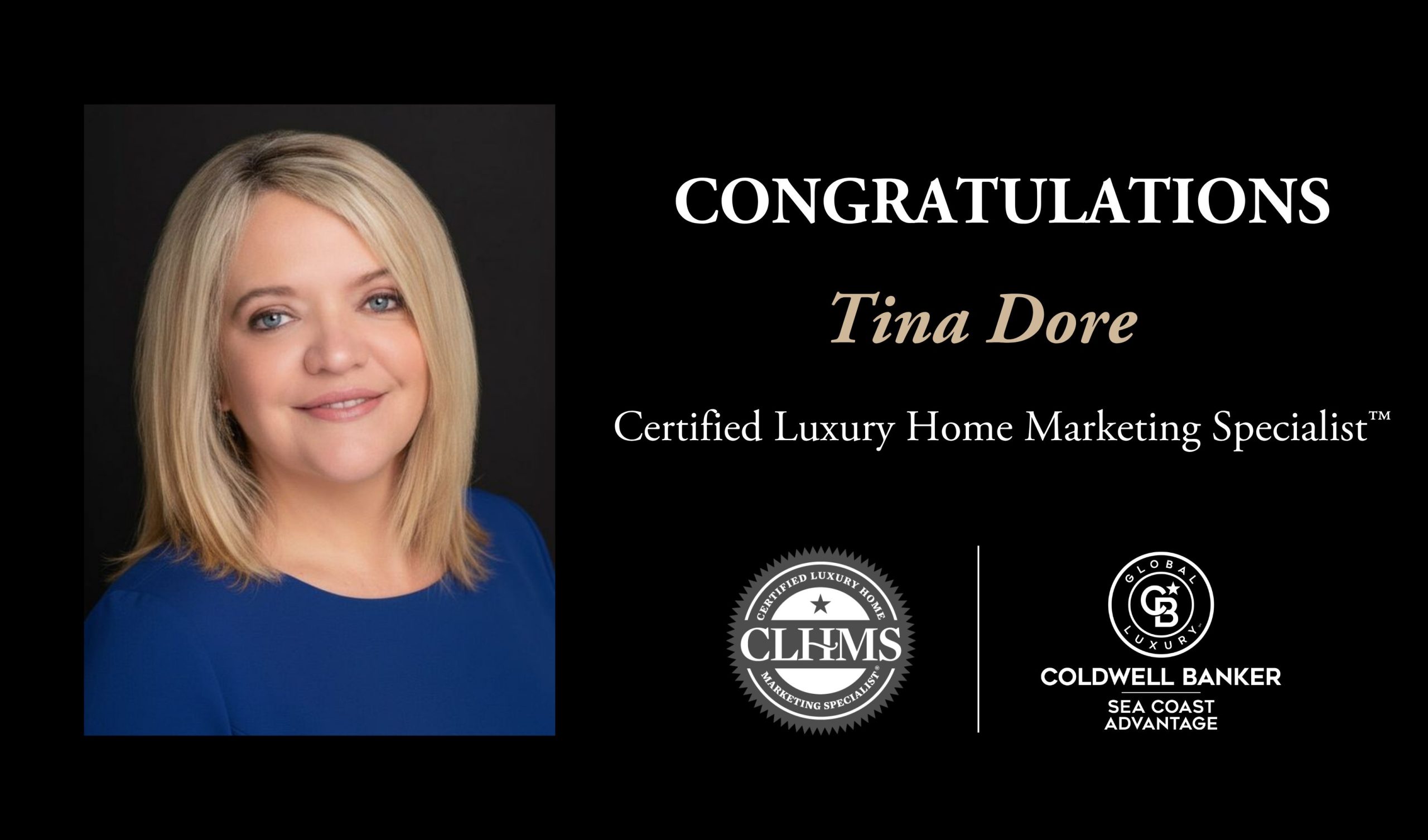 “Attaining the CLHMS designation is a significant accomplishment and testament to Tina’s dedication to providing the best service possible to clients in the luxury residential sector,” commented Kathleen Bibbins, Director of The Institute for Luxury Home Marketing. “The CLHMS “seal” is a symbol of distinction. Affluent buyers and sellers from around the world look for this symbol of knowledge, expertise and performance when putting their trust in a real estate professional.”